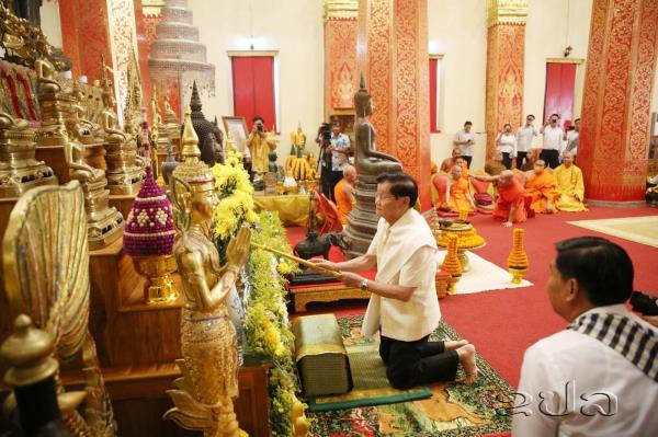 In Vientiane, a variety of events were organized to celebrate the occasion. Religious ceremonies took place at Wat Ong Teu Mahawihan and Wat Si Saket, where Buddha images were brought out for ritual bathing. The ceremonies were led by senior Buddhist leaders and attended by President Thongloun Sisoulith, along with his spouse and senior Party and government officials.