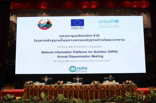 (KPL)The Director General of the Department of International Cooperation of the Ministry of Planning and Investment Sisomboune Ounavong, the Head of Cooperation of the European Union Delegation to the Lao PDR Vincent Vire, and the Representative of UNICEF to the Lao PDR Pia Rebello Britto, on Feb 10 co-chaired the 2nd NIPN Annual Dissemination Meeting in the Lao PDR which provides an opportunity to share new evidence and research findings on nutrition.