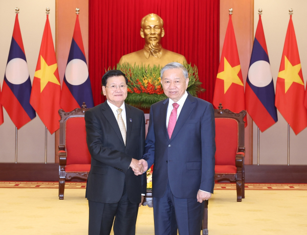 Following the signing ceremony and high-level meeting, President Thongloun Sisoulith, who is also the General Secretary of the Lao People's Revolutionary Party Central Committee, met with Mr. To Lam, General Secretary of the Communist Party of Vietnam Central Committee.