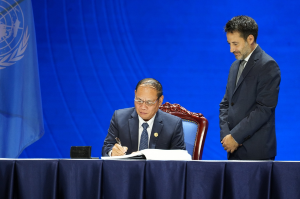 Brig. Gen. Vilay Lakhamfong, Deputy Prime Minister and Minister of Public Security, signed the Convention on behalf of the Lao PDR Government. He also delivered remarks at the high-level meeting, commending the Vietnamese Government for its role as the proponent and host of this Convention's process since 2019, and for hosting the signing ceremony.