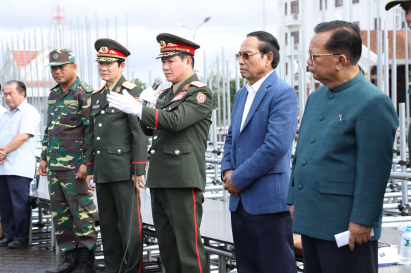 Senior officials, including Vice President Bounthong Chitmany and Deputy Prime Minister Chansamone Chanyalath, observed the rehearsal alongside other government and military leaders.