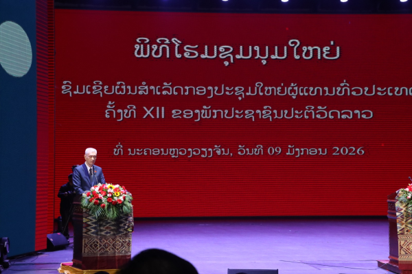 A meeting to commend the outcomes of the 12th National Congress of the Lao People’s Revolutionary Party was held on January 9, 2026, at the National Culture Hall in Vientiane Capital. The meeting was attended by General Secretary Thongloun Sisoulith, senior Party leaders, and Party members.