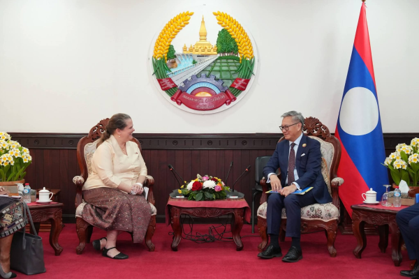Minister of Foreign Affairs, Mr. Thongsavanh Phomvihane, received U.S. Ambassador Ms. Heather Variava for a farewell courtesy call on Thursday afternoon at the Ministry of Foreign Affairs, marking the conclusion of her diplomatic tenure in the Lao PDR.