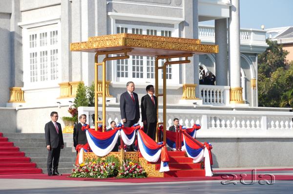 General Secretary of the Lao People’s Revolutionary Party (LPRP) Central Committee and President of the Lao People’s Democratic Republic Thongloun Sisoulith on Wednesday morning hosted an official welcome ceremony for General Secretary of the Communist Party of Viet Nam (CPV) Central Committee To Lam and a high-ranking delegation of the Party and State of Viet Nam, who are paying a State visit to the Lao PDR.