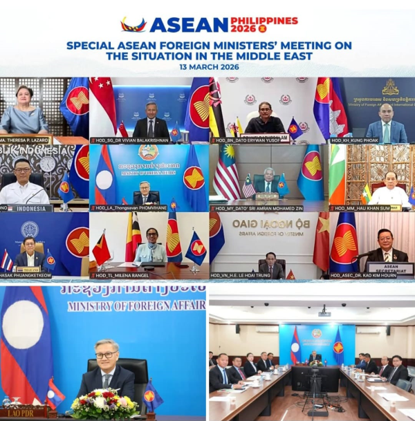 (KPL) On Mar 13, 2026, at the Ministry of Foreign Affairs, Thongsavanh Phomvihane, Minister of Foreign Affairs of the Laos, led a delegation to participate in a Special Virtual Meeting of ASEAN Foreign Ministers on the situation in the Middle East.