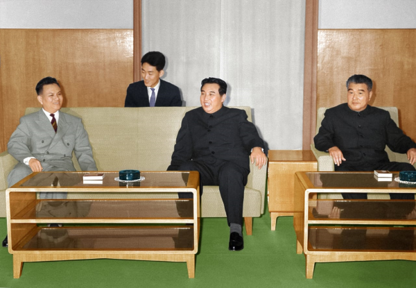 DPRK's President Kim Il Sung welcoming Kaysone Phomvihane, General Secretary of the Central Committee of the Lao People’s Revolutionary Partyin October, 1965