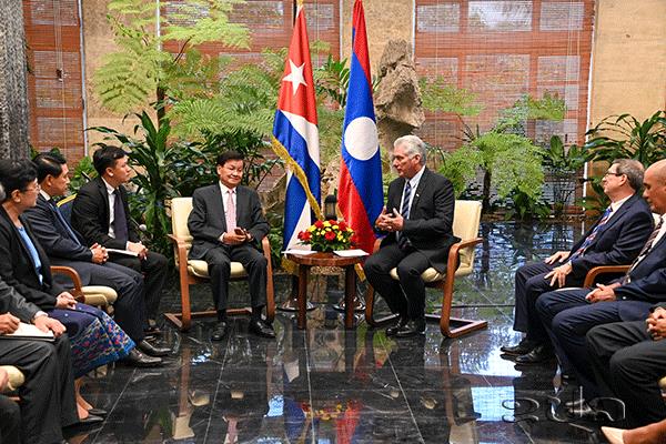 ໃນໂອກາດພົບປະການນໍາຂັ້ນສູງ ສ ກູບາ, ສະຫາຍ ທອງລຸນ ສີສຸລິດ ໄດ້ຢືນຢັນຄືນເຖິງນະໂຍບາຍອັນສະ ເໝີຕົ້ນສະເໝີປາຍຂອງ ພັກ ແລະ ລັດຖະບານລາວ ທີ່ມີຕໍ່ ພັກ ແລະ ລັດຖະບານກູບາ ໃນການເຄື່ອນໄຫວຕໍ່ສູ້ໃນເວທີພາກພື້ນ ແລະ ສາກົນ ລວມທັງການເຄື່ອນໄຫວຕໍ່ສູ້ເພື່ອຢຸດຕິການປິດລ້ອມກູບາ ມາເປັນເວລາ 60 ກວ່າປີ ແລະ ກ່າວສະແດງຄວາມຊົມເຊີຍຜົນສໍາເລັດ ແລະ ໄຊຊະນະ ທີ່ ພັກ, ລັດຖະບານ ແລະ ປະຊາຊົນກູບາ ຍາດມາໄດ້ໃນການປົກປັກຮັກສາໝາກຜົນຂອງການປະຕິວັດ ແລະ ການສ້າງສາພັດທະນາປະເທດ, ພ້ອມທັງ ຊົມເຊີຍ ສ ກູບາ ເປັນເຈົ້າພາບຈັດກອງປະຊຸມສຸດຍອດກຸ່ມປະເທດ 77 ແລະ ຈີນ ໃນຄັ້ງນີ້ ຊຶ່ງສະແດງເຖິງຄວາມເຊື່ອໝັ້ນ ແລະ ການຮັບຮູ້ຂອງສາກົນຕໍ່ບົດບາດຂອງກູບາໃນເວທີສາກົນ.