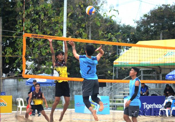 ການແຂ່ງຂັນບານສົ່ງຫາດຊາຍ ລະຫວ່າງ ນະຄອນຫລວງວຽງຈັນ ແລະ ຈຳປາສັກ (ສາຍ ກ) ມີຂຶ້ນໃນຕອນບ່າຍຂອງວັນທີ 17 ພະຈິກ 2025 ທີ່ເດີນບານສົ່ງຫາດຊາຍກອງທັບ ຫລັກ 5 ເລີ່ມຕົ້ນການແຂ່ງຂັນເຊັດທຳອິດ ນະຄອນຫລວງວຽງຈັນມາດີກວ່າ ຕີຄະແນນຂຶ້ນນຳ, ແຕ່ຈຳປາສັກກໍອາໃສໂອກາດີສວນກັບຫລາຍຄັ້ງ ແຕ່ບໍ່ສາມາດຕີຕື້ນຂຶ້ນມາ ຈົບເຊັດທີ 1 ນະຄອນຫລວງຊະນະໄປ 21-12. ກັບຄືນມາເຊັດທີ 2 ເລີ່ມຂຶ້ນກໍເປັນຝ່າຍນຳ ແຕ່ຈຳປາສັກຫວັງເອົາຊະນະເຊັດນີ້. ຂະນະທີ່ຮອດທ້າຍເຊັດນະຄອນຫລວງວຽງຈັນແກ້ເກມໄດ້ ເກັບແຕ້ມນຳຫ່າງ ແລະ ເອົາຊະນະດ້ວຍຄະແນນ 21-18.