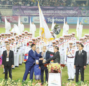 ໂອກາດນີ້, ທ່ານ ທອງສະລິດ ມັງໜໍ່ເມກ ລັດຖະມົນຕີກະຊວງສຶກສາທິການ ແລະ ກິລາ ໄດ້ມອບທຸງກິລາແຫ່ງຊາດ ໃຫ້ແຂວງຈຳປາສັກ ເປັນເຈົ້າພາບຄັ້ງຕໍ່ໄປ ກໍຄືຄັ້ງທີ XIII ຕາງໜ້າຮັບໂດຍ ທ່ານ ອາລຸນໄຊ ສູນນະລາດ ເຈົ້າແຂວງຈຳສັກ ຊຶ່ງງານມະຫະກຳກິລາແຫ່ງຊາດ ຄັ້ງທີ XIII ຈະຈັດຂຶ້ນ ໃນອີກ 3 ປີຂ້າງໜ້າ ໃນ 2028.