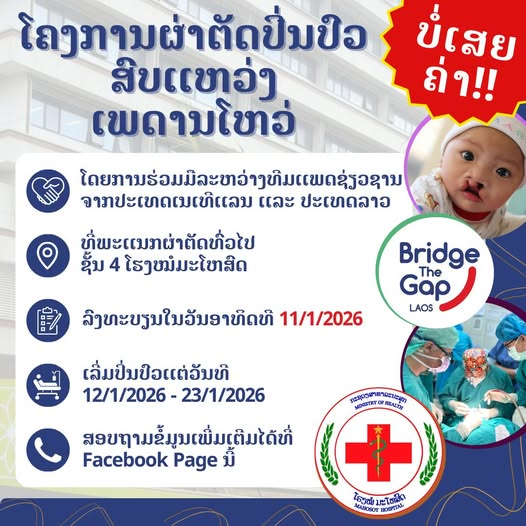 Free patient registration will open on 11 January 2026, with medical treatment scheduled from 12 to 23 January 2026. All activities will take place on the 4th Floor of the New Building at Mahosot Hospital.