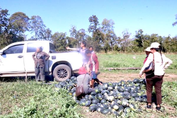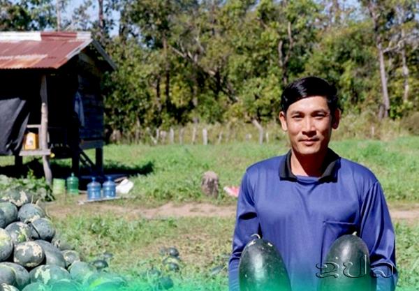 ຂປລ. ໃນທ່າມກາງແສງແດດທີ່ອົບອຸ່ນຂອງເມືອງສະໜາມໄຊ, ແຂວງອັດຕະປື, ຜືນດິນທີ່ເຄີຍແຫ້ງແລ້ງ ແລະ ເຄີຍລໍຖ້າພຽງນ້ຳຝົນຕາມລະດູການຢູ່ບ້ານສົ້ມປ່ອຍ ໄດ້ຖືກເນລະມິດໃຫ້ກາຍເປັນທົ່ງໝາກໂມທີ່ຂຽວງາມສຸດສາຍຕາ.