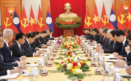ສໍາລັບທິດທາງແຜນການຮ່ວມມືໃນຕໍ່ໜ້າ, ສອງເລຂາທິການໃຫຍ່ລາວ-ຫວຽດນາມ ເຫັນດີຈະສືບຕໍ່ຮັກສາມູນເຊື້ອການແລກປ່ຽນຢ້ຽມຢາມ ແລະ ການພົບປະເຊິ່ງກັນ ແລະ ກັນ ລະຫວ່າງການນໍາຂັ້ນສູງຂອງສອງພັກ, ສອງລັດກໍຄືບັນດາ ກະຊວງ-ຂະແໜງການ ນັບແຕ່ສູນກາງຮອດທ້ອງຖິ່ນຢ່າງເປັນປົກກະຕິ ໂດຍເນັ້ນໃສ່ການຍົກສູງຄຸນນະພາບ ແລະ ລົງເລິກການຮ່ວມມືທີ່ມີລັກສະນະຍຸດທະສາດ; ສືບຕໍ່ຮັດແໜ້ນການພົວພັນຮ່ວມມື ແລະ ປະສານສົມທົບກັນຢ່າງໃກ້ຊິດໃນວຽກງານປ້ອງກັນຊາດ-ປ້ອງກັນຄວາມສະຫງົບ; ສືບຕ່ໍສຸມໃສ່ສ້າງເງື່ອນໄຂອໍານວຍຄວາມສະດວກເພື່ອຊຸກຍູ້ການເຊື່ອມໂຍງພື້ນຖານເສດຖະກິດຂອງສອງປະເທດໃຫ້ເປັນຮູບປະທໍາ ໂດຍສະເພາະແມ່ນການເລັ່ງລັດໂຄງການທາງດ່ວນວຽງຈັນ-ຮ່າໂນ້ຍ; ສືບຕໍ່ເອົາໃຈໃສ່ໂຄສະນາເຜີຍແຜ່ ແລະ ສຶກສາອົບຮົມປະຊາຊົນ ໂດຍສະເພາະແມ່ນຄົນຮຸ່ນໜຸ່ມ ໃຫ້ມີຄວາມເຂົ້າໃຈຢ່າງເລິກເຊິ່ງເຖິງຕົ້ນກໍາເນີດ, ຄຸນຄ່າ ແລະ ຄວາມໝາຍສໍາຄັນທາງປະຫວັດສາດຂອງສາຍພົວພັນພິເສດ ລາວ-ຫວຽດນາມ; ພ້ອມທັງສືບຕໍ່ກະກຽມຄວາມພ້ອມຮອບດ້ານ ເພື່ອສະເຫລີມສະຫລອງ “ປີສາມັກຄີມິດຕະພາບລາວ-ຫວຽດ ນາມ ປີ 2027” ເນື່ອງໃນໂອກາດວັນສ້າງຕັ້ງສາຍພົວພັນການທູດ ຄົບຮອບ 65 ປີ ແລະ ວັນເຊັນສົນທິສັນຍາມິດຕະພາບ ແລະ ການຮ່ວມມື ຄົບຮອບ 50 ປີ ໃຫ້ມີເນື້ອໃນອຸດົມສົມບູນ ແລະ ມີຄວາມໝາຍອັນເລິກເຊິ່ງ.