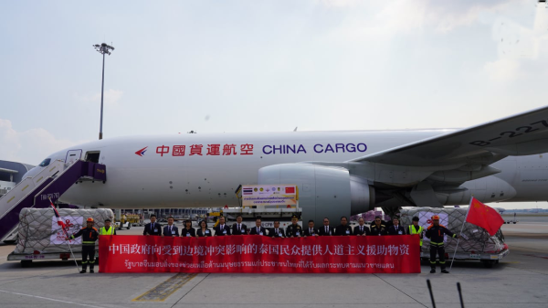 ເອກອັກຄະລັດຖະທູດ ຈາງຈ້ຽນ ເວ່ຍ ກ່າວວ່າ: ລັດຖະບານຈີນ ໄດ້ໃຫ້ຄວາມຊ່ວຍເຫລືອ ດ້ານມະນຸດສະທຳໃຫ້ແກ່ ປະຊາຊົນຊາວໄທ ທີ່ໄດ້ຮັບ ຜົນກະທົບ ຈາກຄວາມຂັດແຍ້ງ ທາງຊາຍແດນໄທ-ກຳປູເຈຍ ເປັນຈຳນວນເງິນ 20 ລ້ານຢວນ, ສ່ວນໃຫຍ່ເປັນສິ່ງຂອງ ຈຳເປັນ ເລັ່ງດ່ວນເຊັ່ນ: ເສື້ອຜ້າ ແລະ ອາຫານ ແລະ ໄດ້ມາເຖິງ ບາງກອກແລ້ວ. ສິ່ງຂອງດັ່ງກ່າວນີ້ ໄດ້ສະແດງເຖິງ ມິດຕະພາບ ອັນພິເສດ ຈີນ-ໄທ ແລະ ເຊື່ອວ່າ ຈະຊ່ວຍບັນເທົາ ຄວາມເດືອດຮ້ອນ ຂອງຊາວໄທ ທີ່ອາໄສ ຢູ່ຕາມຊາຍແດນ ເພື່ອໃຫ້ພວກເຂົາ ກັບຄືນສູ່ ຊີວິດປົກກະຕິ ໂດຍໄວທີ່ສຸດ./