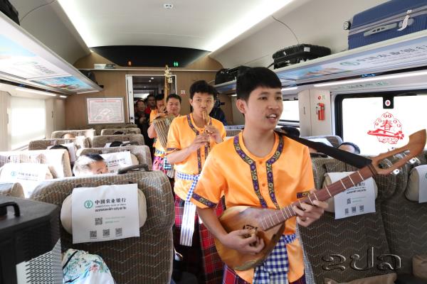 The event took place on a train traveling from Vientiane to Luang Prabang, featuring traditional Lao arts such as dance, song, and performances on the khaen and flute. It was organized to welcome a Chinese delegation and to mark the 65th anniversary of Lao–China diplomatic relations, coinciding with the Chinese New Year (Spring Festival) celebrations.