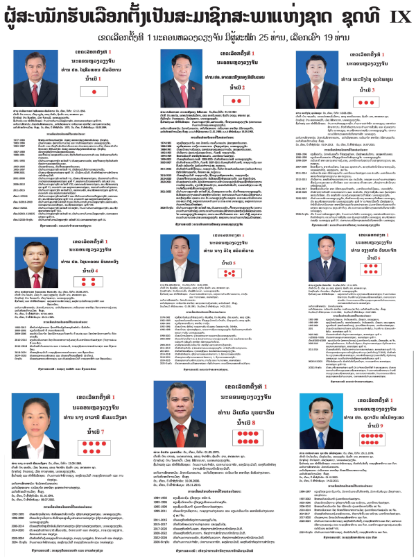ຫນ້າທຳອິດ ການເມືອງ ຜູ້ສະໝັກເລື່ອກຕັ້ງເປັນສະມາຊິກສະພາແຫ່ງຊາດ ຊຸດທີ IX 10/02/2026 06:16 Email Print 67 ຂປລ ເຂດເລືອກຕັ້ງທີ 1 ນະຄອນຫລວງວຽງຈັນ ມີຜູ້ສະໝັກ 25 ທ່ານ, ເລືອກເອົາ 19 ທ່ານ KPL ຂ່າວອື່ນໆ ການເມືອງຜູ້ສະໝັກເລືອກຕັ້ງ ສສຊ ເຂດ 1 ນວ ລົງພົບປະປະຊາຊົນ2/9/2026 7:03:36 PM ພິທີໂຄສະນາຫາ ສຽງແກ່ຜູ້ສະໝັກເລືອກຕ້ັງໃຫ້ຜູ້ລົງສະໝັກເລືອກຕັ້ງ ເປັນສະມາຊິກສະພາແຫ່ງຊາດ (ສສຊ) ຊຸດທີ X ປະຈຳເຂດເລືອກຕ້ັງນະຄອນຫລວງວຽງຈັນ (ນວ) ຈັດຂຶ້ນວັນທີ 6 ກຸມພາ 2026.ການເມືອງ3ພັກ ເພີ່ມທະວີການພົວພັນຮ່ວມມື ໃນໄລຍະເເຫ່ງການພັດທະນາໃຫມ່2/9/2026 6:47:04 PM ໃນວັນທີ 6 ກຸມພາ 2026, ສະຫາຍ ທອງລຸນ ສີສຸລິດ ເລຂາທິການໃຫຍ່ ຄະນະບໍລິຫານງານສູນກາງພັກປະຊາຊົນປະຕິວັດລາວ, ປະທານປະເທດແຫ່ງ ສປປ ລາວ, ສະຫາຍ ໂຕ ເລິມ ເລຂາທິການໃຫຍ່ ຄະນະບໍລິຫານງານສູນກາງພັກ ກອມມູນິດຫວຽດນາມ ແລະ ສົມເດັດ ເຕໂຈ ຮຸນເຊນ ປະທານພັກປະຊາຊົນ ກຳປູເຈຍ, ປະທານສະພາສູງ ແຫ່ງຣາຊະອານາຈັກກຳປູເຈຍ ໄດ້ພົບປະສຸດຍອດ ລາວ-ຫວຽດນາມ- ກຳປູເຈຍ ຢູ່ນະຄອນຫລວງພະນົມເປັນ.ການເມືອງປະທານສະພາແຫ່ງຊາດລາວ ພົບປະກັບເລຂາທິການໃຫຍ່ພັກກອມມູນິດຫວຽດນາມ2/6/2026 11:35:56 AM ໃນຕອນບ່າຍວັນທີ 5 ກຸມພາ 2026, ທີ່ສະພາແຫ່ງຊາດລາວ, ສະຫາຍ ໄຊສົມພອນ ພົມວິຫານ ກໍາມະການກົມການເມືອງສູນກາງພັກ, ປະທານສະພາແຫ່ງຊາດແຫ່ງ ສປປ ລາວ ໄດ້ຕ້ອນຮັບ ແລະ ພົບປະກັບ ສະຫາຍ ໂຕ ເລິມ ເລຂາທິການໃຫຍ່ຄະນະບໍລິຫານງານສູນກາງພັກກອມມູນິດຫວຽດນາມ.ການເມືອງລາວ-ຫວຽດນາມ ສືບຕໍ່ຫັດແໜ້ນສາຍພົວພັນມິດຕະພາບແບບພິເສດ2/6/2026 11:25:33 AM ໂດຍຕອບສະໜອງຕາມຄຳເຊື້ອເຊີນຂອງ ສະຫາຍ ທອງລຸນ ສີສຸລິດ ເລຂາທິການໃຫຍ່ຄະນະບໍລິຫານງານສູນກາງພັກປະຊາຊົນ ປະຕິວັດລາວ, ປະທານປະເທດແຫ່ງ ສາທາລະນະລັດ ປະຊາທິປະໄຕ ປະຊາຊົນລາວ, ສະຫາຍ ໂຕ ເລິມ ເລຂາທິການໃຫຍ່ຄະນະບໍລິຫານງານສູນກາງພັກກອມມູນິດຫວຽດນາມ ພ້ອມດ້ວຍຄະນະຜູ້ແທນຂັ້ນສູງ ແຫ່ງສາທາລະນະລັດ ສັງຄົມນິຍົມຫວຽດນາມ ໄດ້ເດີນທາງມາຢ້ຽມຢາມລັດຖະກິດຢູ່ສາທາລະນະລັດ ປະຊາທິປະໄຕ ປະຊາຊົນລາວ ໃນວັນທີ 5 ກຸມພາ 2026.ການເມືອງສຳເລັດຝຶກອົບຮົມໃຫ້ຜູ້ຮັບສະໝັກເລືອກຕັ້ງ ສສຊ-ສສຂ ເພດຍິງ 10 ເເຂວງພາກເໜືອ2/5/2026 8:10:40 PM ຊຸດຝຶກອົບຮົມໃຫ້ຜູ້ສະໝັກຮັບເລືອກຕັ້ງສະມາຊິກສະພາແຫ່ງຊາດ (ສສຊ) ຊຸດທີ X ແລະ ສະມາຊິກສະພາປະຊາຊົນຂັ້ນແຂວງ (ສສຂ) ຊຸດທີ V ເພື່ອກຽມຄວາມພ້ອມລົງສູ່ສະໜາມການເລືອກຕັ້ງຕົວຈິງ ກໍຄື ການກະກຽມໂຄສະນາຫາສຽງ.