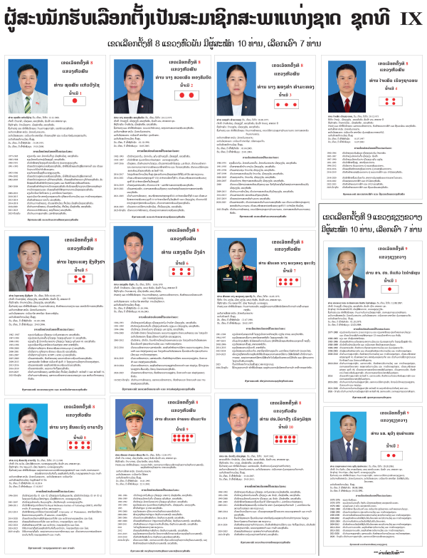 ຫນ້າທຳອິດ ບົດ-ສາລະຄະດີ ຜູ້ສະໝັກເລື່ອກຕັ້ງເປັນສະມາຊິກສະພາແຫ່ງຊາດ ຊຸດທີ IX ເຂດເລືອກຕັ້ງທີ 8 ແຂວງ ຫົວພັນ 11/02/2026 06:38 Email Print 52 ຂປລ ເຂດເລືອກຕັ້ງທີ 8 ແຂວງຫົວພັນ ມີຜູ້ສະໝັກ 10 ທ່ານ , ເລືອກເອົາ 7 ທ່ານ KPL ຂ່າວອື່ນໆ ບົດ-ສາລະຄະດີຜູ້ສະໝັກເລື່ອກຕັ້ງເປັນສະມາຊິກສະພາແຫ່ງຊາດ ຊຸດທີ IX ເຂດເລືອກຕັ້ງທີ 7 ແຂວງໄຊຍະບູລີ2/11/2026 6:41:06 AMເຂດເລືອກຕັ້ງທີ 7 ແຂວງໄຊຍະບູລີ ມີຜູ້ສະໝັກ 13 ທ່ານ, ເລືອກເອົາ 9 ທ່ານ.ບົດ-ສາລະຄະດີຜູ້ສະໝັກເລືອຕັ້ງເປັນ ສສຊ ເຂດເລືອກຕັ້ງທີ 9 ໂຄສະນາຫາສຽງຢູ່ 2 ກຳລັງປະກອບອາວຸດ2/11/2026 6:28:08 AM ໃນລະຫວ່າງວັນທີ 9-10 ກຸມພາ 2026 ນ້ີ, ທ່ານ ບຸນໂຮມ ເທດທານີ ປະທານສະພາປະຊາຊົນແຂວງ, ຮອງປະທານຄະນະກຳມະການເລືອກຕັ້ງ ແຂວງຊຽງຂວາງ ໄດ້ນຳພາຜູ້ສະໝັກຮັບເລືອກຕັ້ງເປັນສະມາຊິກສະພາແຫ່ງຊາດ (ສສຊ) ປະຈຳເຂດເລືອກຕັ້ງທີ 9 ແຂວງຊຽງຂວາງ ຊຸດທີ X ລົງໂຄສະນາ ຫາສຽງ ແລະ ແນະນຳຕົວຕໍ່ຜູ້ມີສິດ ເລືອກຕັ້ງຢູ່ກຳລັງປ້ອງກັນຊາດ- ປ້ອງກັນຄວາມສະຫງົບ ແຂວງຊຽງຂວາງ ຢູ່ 3 ຈຸດ ຄື:ບົດ-ສາລະຄະດີຜູ້ສະໝັກຮັບເລືອກຕັ້ງ ຕ້ອງກຽມພ້ອມຮອບດ້ານເຮັດໃຫ້ການເລືອກຕັ້ງບັນລຸເປົ້າຫມາຍ2/5/2026 8:34:45 PM ໃນໂອກາດເຂົ້າຮ່ວມຊຸດຝຶກອົບຮົມ ໃຫ້ຜູ້ສະໝັກຮັບເລືອກຕ້ັງ ສະມາຊິກສະພາແຫ່ງຊາດ (ສສຊ) ຊຸດທີ X ແລະ ສະມາຊິກສະພາປະຊາຊົນຂັ້ນແຂວງ (ສສຂ) ຊຸດ ທີ V ເພື່ອກຽມຄວາມພ້ອມລົງສູ່ສະໜາມການເລືອກຕັ້ງຕົວຈິງ ກໍຄືການກະກຽມໂຄສະນາຫາສຽງໃນເວລາລົງພົບປະປະຊາຊົນຜູ້ມີສິດ ເລືອກຕັ້ງ ທີ່ຈັດຂຶ້ນໃນວັນທີ 2 ກຸມພາ 2026 ຢູ່ເມືອງວັງວຽງ ແຂວງ ວຽງຈັນ.ບົດ-ສາລະຄະດີຍຸກສະໄໝໃໝ່ແຫ່ງການກໍ່ສ້າງຂອງພັກແຮງງານເກົາຫລີ2/5/2026 10:37:11 AMຂປລ. 5 ປີທີ່ຜ່ານມາ ສາມາດເຫັນໄດ້ວ່າເປັນເຫດການສໍາຄັນໃນປະຫວັດສາດຂອງພັກແຮງງານເກົາຫລີ ຊຶ່ງໄດ້ເຂົ້າສູ່ຍຸກສະໄໝໃໝ່ແຫ່ງການກໍ່ສ້າງ. ໃນໄລຍະນີ້, ພັກແຮງງານເກົາຫລີ ໄດ້ສົ່ງເສີມແນວຄິດ ແລະ ທິດສະດີການພັດທະນາທາງດ້ານວິທະຍາສາດ ແລະ ການປະຕິບັດເພື່ອຍຶດໝັ້ນກັບລັກສະນະຂອງພັກ.ບົດ-ສາລະຄະດີອະນຸກຳມະການເລືອກຕັ້ງຂັ້ນແຂວງ ຊຸກຍູ້ວຽກງານກະກຽມການເລືອກຕັ້ງ ຢູ່ເມືອງໄຊພູທອງ2/4/2026 8:22:45 PM ແຫລ່ງຂ່າວຈາກແຂວງ ສະຫວັນນະເຂດ ໃຫ້ຮູ້ວ່າ: ອະນຸກຳມະການໂຄງປະກອບ ແລະ ບຸກຄະລາກອນຂັ້ນແຂວງສະຫວັນນະເຂດ ເພ່ືອກະກຽມໃຫ້ແກ່ການເລືອກຕັ້ງສະມາຊິກສະພາແຫ່ງຊາດ (ສສຊ) ຊຸດທີ X ແລະ ສະພາປະຊາຊົນແຂວງ (ສສຂ) ຊຸດທີ V.