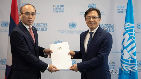 (KPL) Mr. Khonepheng Thammavong, Ambassador Plenipotentiary of the Lao PDR to Austria, last week in Vienna, presented his credential letter to Executive Director of the United Nations Industrial Development Organization (UNIDO), Mr. Ciyong Zou.