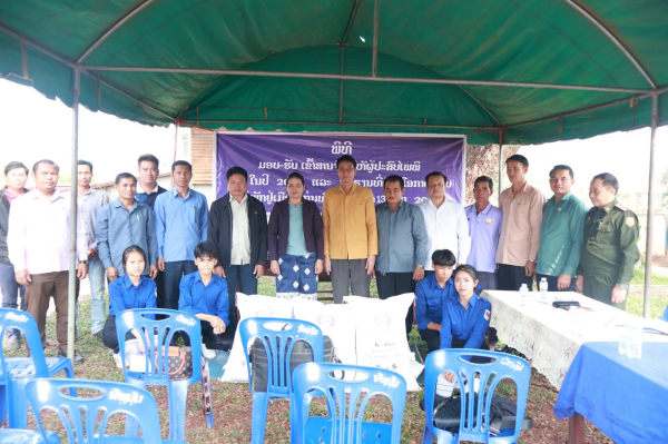 Some 2,760 kg of white rice was distributed to 77 families across eight villages: Houay La, Na Kham, Don Sang, Khae, Don Men, Houay Bouha, Pak Khaem, and Ban Nong; and 240 kg to 24 underprivileged students.